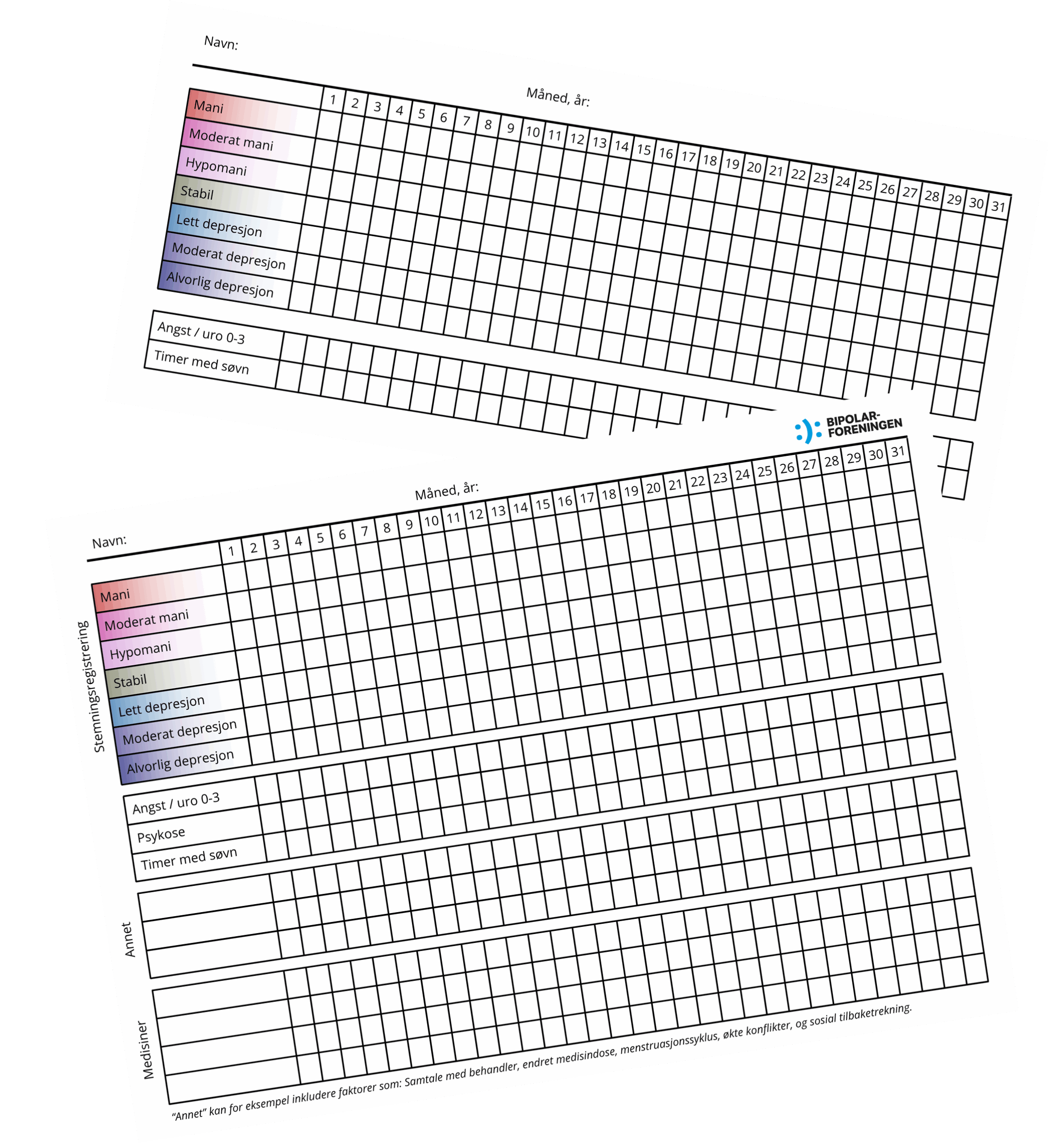 Idéen med å bruke stemningsregistreringsskjema handler om å få god oversikt over sine egne svingninger mellom det depressive, normale og maniske. For noen varierer svingningsmønsteret mye og ofte, for andre varierer det lite.